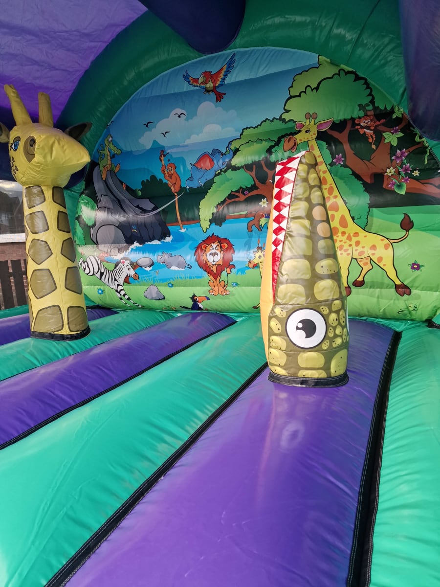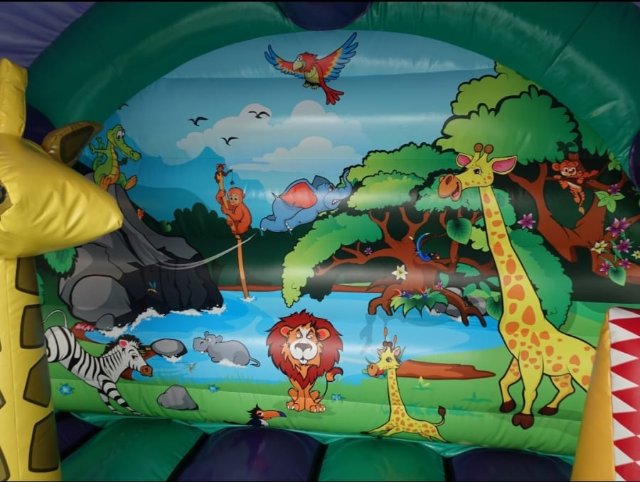 Our Jungle Castle is a perfect bouncy castle to hire for a party of any occasion to match a jungle themed birthday. The castle size itself is 13x14ft which is ideal for both indoor and outdoor hire. This bouncy castle will keep both children entertained for hours whilst you sit back and watch them enjoy themselves and listen to the sound of laughter throughout the hire.