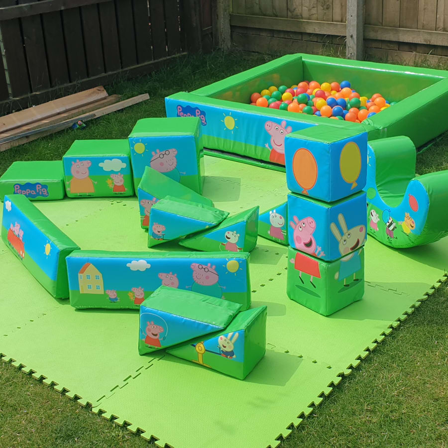 J Bouncetastic is thrilled to bring you PEPPA PIG a fantastic 19 piece soft play set and ball pool - the blocks and shapes fit together to make scenes of PEPPA PIG. Peppa pig is an all time favourite of children and what better way to add to their celebrations then with our high gloss themed soft play and ball pool. Guaranteed to provide hours of fun. COVERING BEVERLEY, LECONFIELD, CHERRY BURTON, TICKTON, LEVEN, WALKINGTON, BRANDSBURTON, COTTINGHAM, HULL, DRIFFIELD, MARKET WEIGHTON, HOLME UPON SPALDING MOOR, BROUGH, SOUTH CAVE, NORTH CAVE, HORNSEA, POCKLINGTON & MORE. TO BRING YOU THE BEST PARTY EQUIPMENT AROUND
