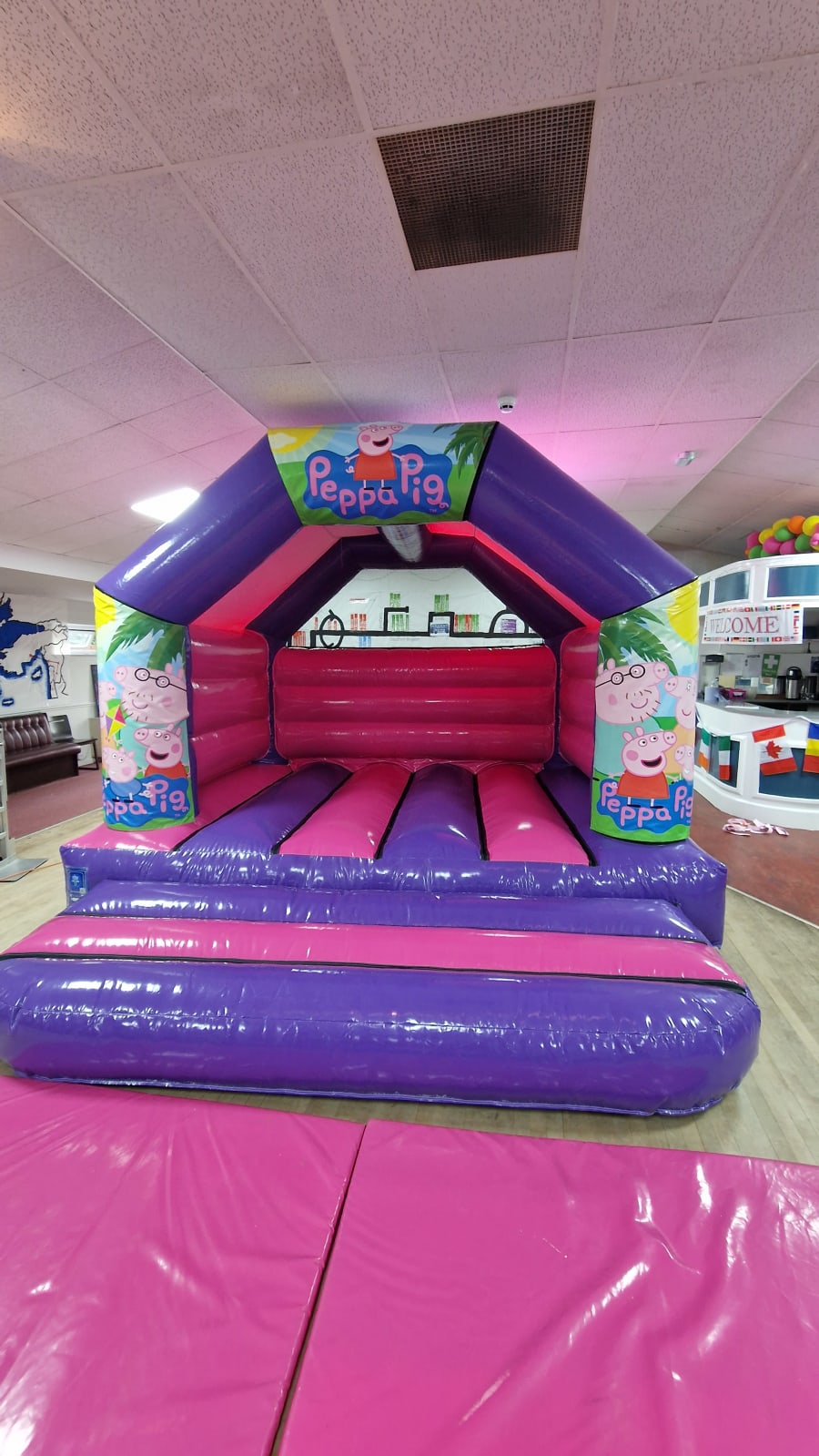 Our High Gloss Peppa Pig Castle is a perfect bouncy castle to hire for a party of any occasion with Peppa Pig fans attending. The castle size itself is 12x12ft which is ideal for both indoor and outdoor hire. This bouncy castle will keep both children and adults entertained for hours whilst you sit back and watch them enjoy themselves and listen to the sound of laughter throughout the hire.