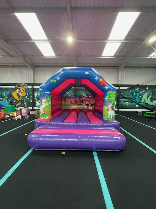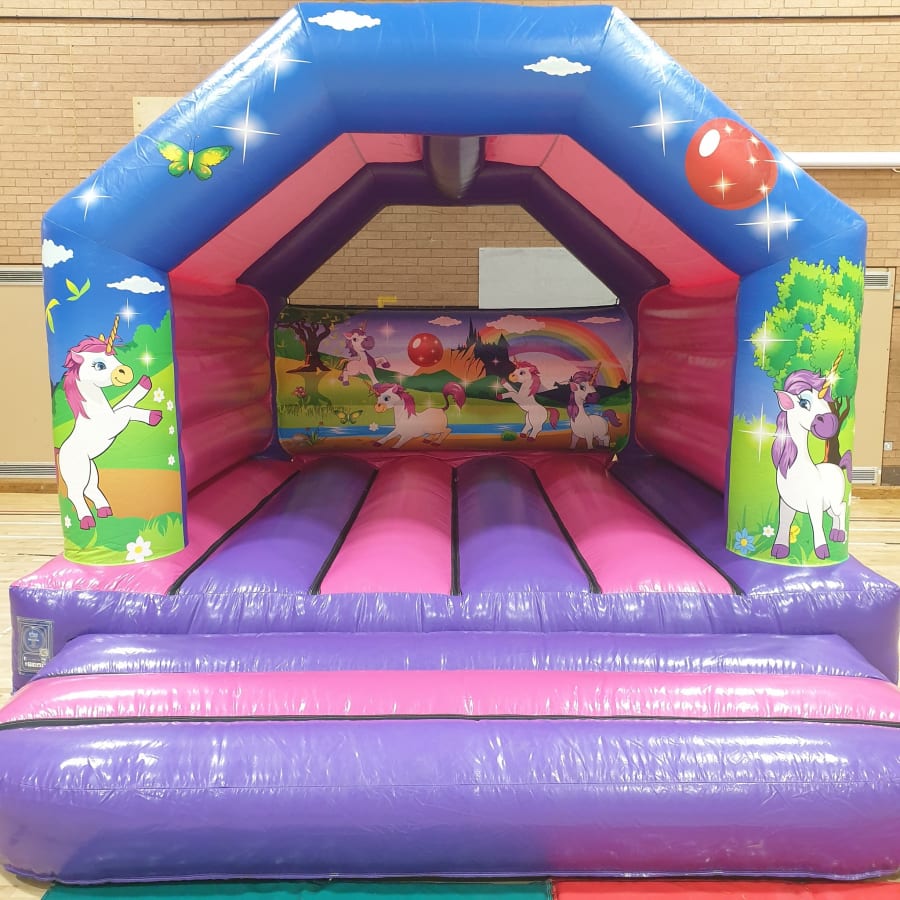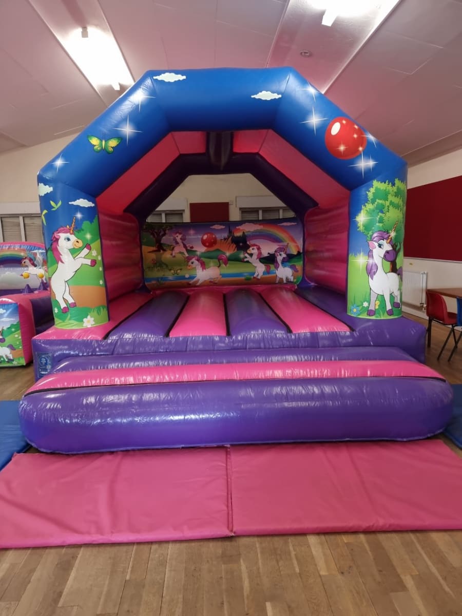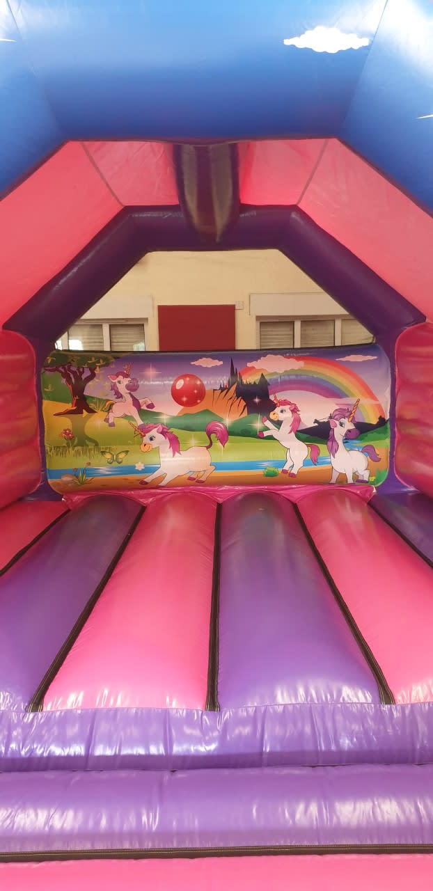 Our HIGH GLOSS 12x15ft UNICORN Castle is a perfect bouncy castle to hire for a party of any occasion. The castle size itself is 12x15ft which is ideal for both indoor and outdoor hire. This bouncy castle will keep both children and adults entertained for hours whilst you sit back and watch them enjoy themselves and listen to the sound of laughter throughout the hire. Why not make it the complete unicorn package with the matching unicorn air juggler ball pool