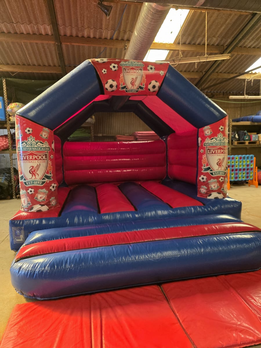 Bring the passion of the Kop End & Anfield to your party. Our Liverpool bouncy castle is a themed, high-energy attraction for fans of all ages. Perfect for birthdays, club events, and family gatherings. Safe, clean, and eye-catching — ideal for Liverpool supporters in Hull and surrounding towns. Our Liverpool Bouncy Castle hire in Hull is available now. You'll Never Walk Alone at your party/event again as you and your friends enjoy our epic and table topping inflatable. To bring your ultimate football party ideas to life you may want to take a look at our football penalty shootout our our football dart board to add to the fun. For any equerries you can contact us HERE or call us on 07775080994