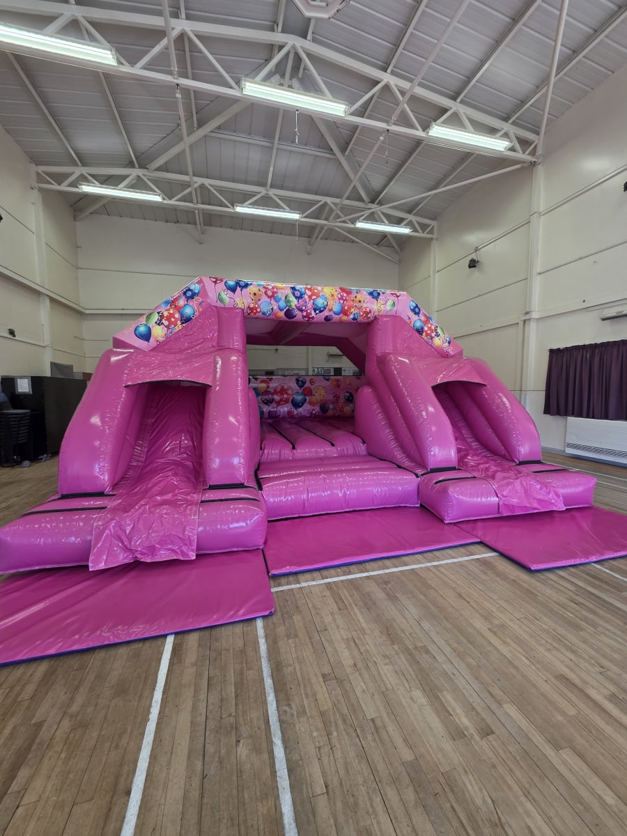 Weather its part of a public event or for a personal gathering/party our Dual castle is perfect for all occasions and is suitable for a party of around 30 children. If pink isn't your thing we also have our totally unique multicoloured Dual combi available with our matching ball pool also.