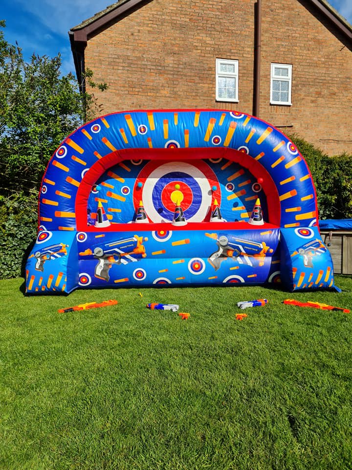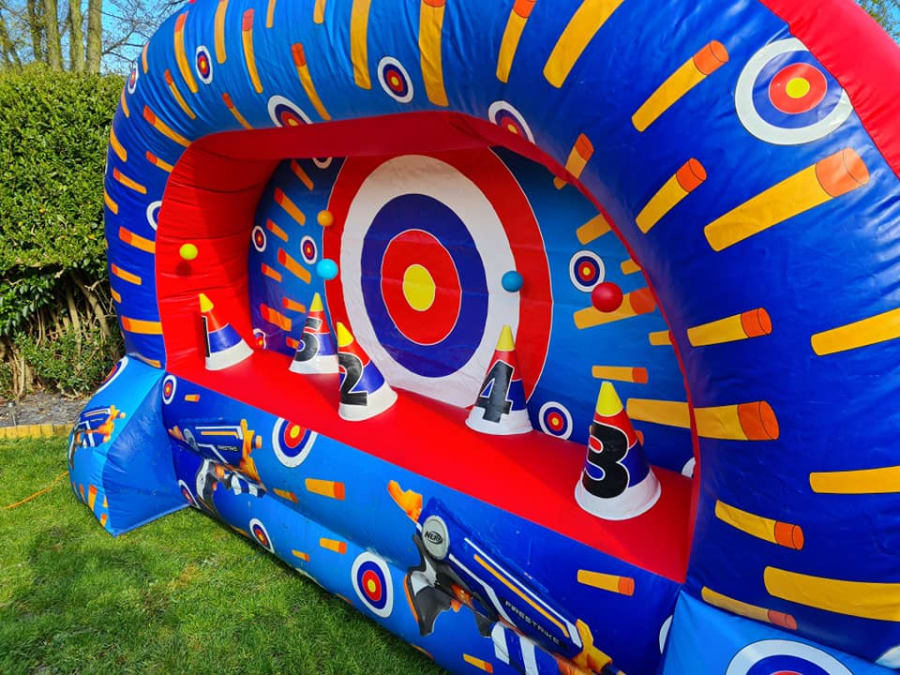 The nerf target wall is a perfect games bulit for fun and accuracy. This amazing piece of equipment is based on the air flow coming through specially designed cones facing the front to which the balls hover in the air flow to create a floating target. This party piece is a must have for most birthday parties and is a perfect game for adults and children alike.
