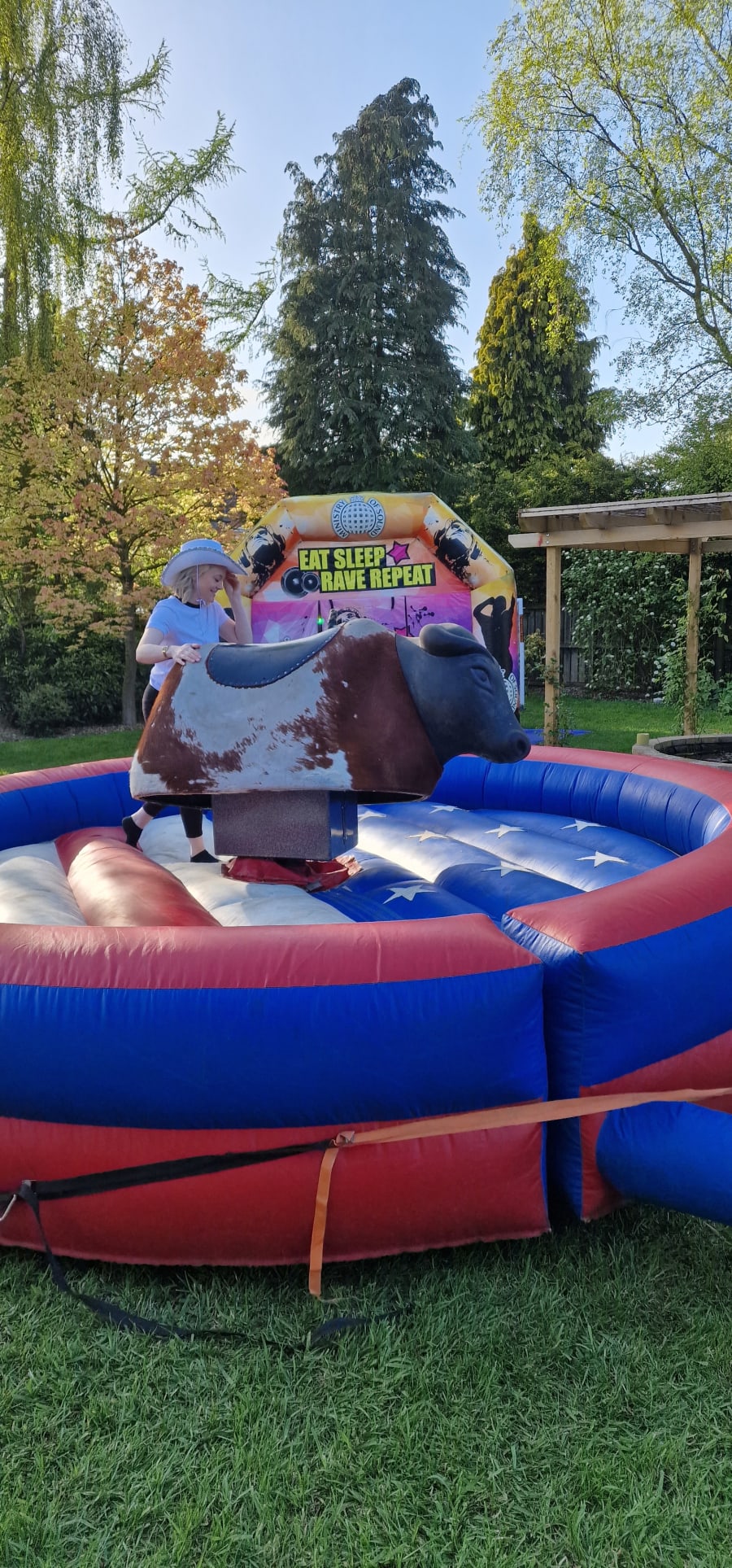 Our Rodeo Bull is a 4 Hour booking with staff provided. Extra hours are available for £50ph Please contact us if you wish to book extra hours! Contact J Bouncetastic