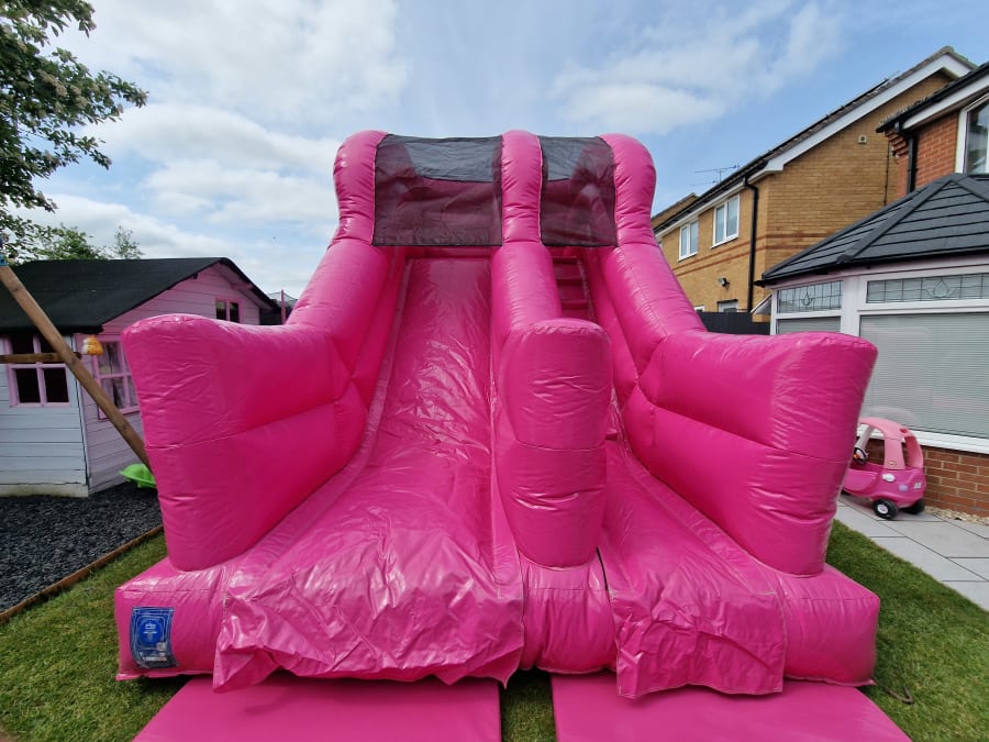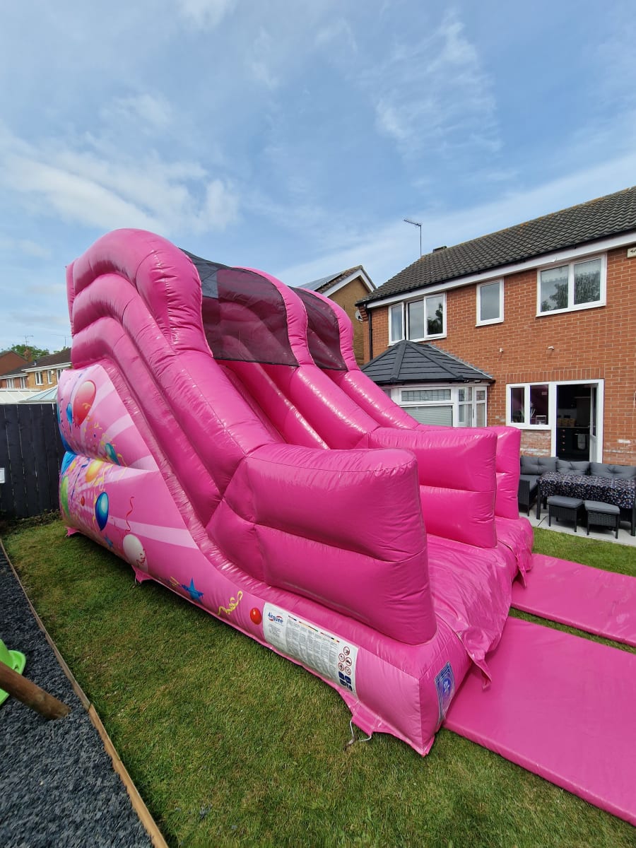 Our amazing BRAND NEW pink slide is the perfect stand out party inflatable. at 12ft tall with a 8ft sliding platform this slide will provide hours of entertainment for children of all ages. The sheer excitement of climbing the steps to the top is enough to put a smile on any childs face and then be able to take the huge slide down when at the top will be the stand out moments of any party. This is a perfect garden castle at only 12ft wide and 18ft long it will fit into most back gardens. Our slide is perfect for summer fayres, birthdays, fun days, weddings, christenings and more. COVERING BEVERLEY, LECONFIELD, CHERRY BURTON, TICKTON, LEVEN, WALKINGTON, BRANDSBURTON, COTTINGHAM, HULL, DRIFFIELD, MARKET WEIGHTON, HOLME UPON SPALDING MOOR, BROUGH, SOUTH CAVE, NORTH CAVE, HORNSEA, POCKLINGTON & MORE. TO BRING YOU THE BEST PARTY EQUIPMENT AROUND