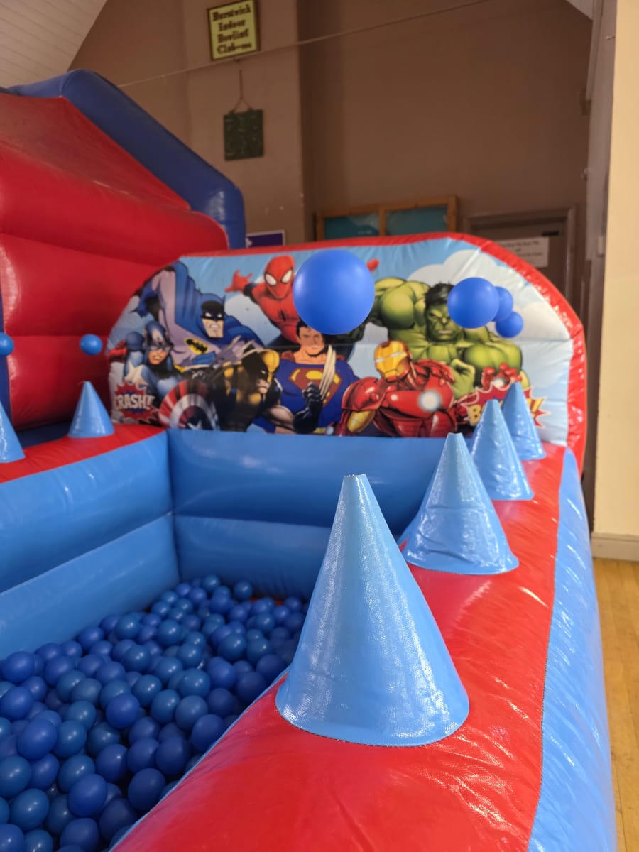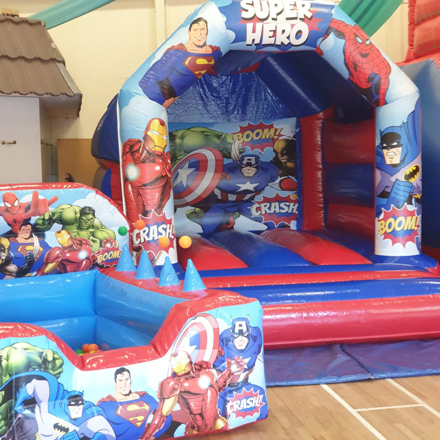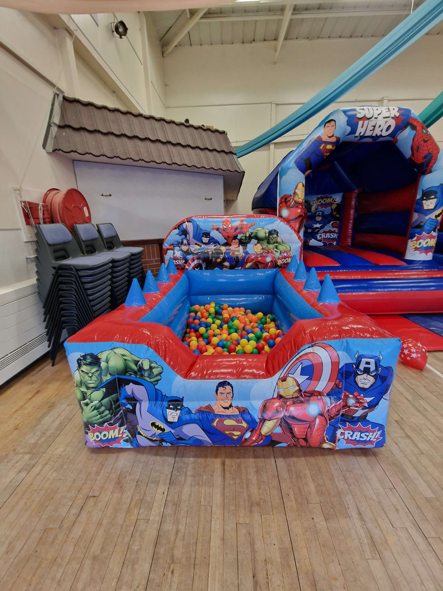 The Superhero themed ball pool is an amazing add on to any of our products. The SuperHero Ball Pool also matches perfectly with our Superhero Castle for the complete package. With the built in AIR JUGGLER feature this sure provides some great fun for all.