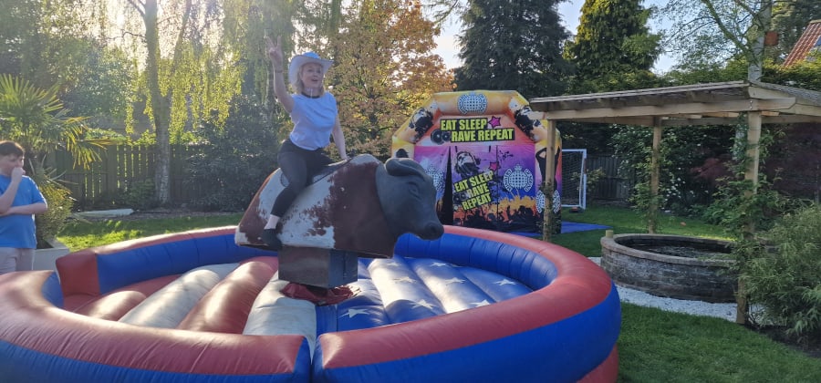 Our Rodeo Bull comes with digital scoreboard so you can see who lasts the longest and a trained member of staff, to operate the Bull, leaving you to enjoy your party/event and to entertain your guests.