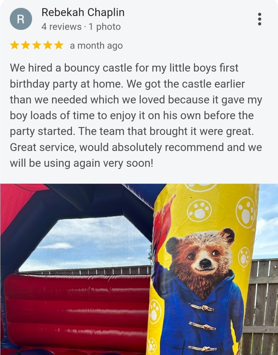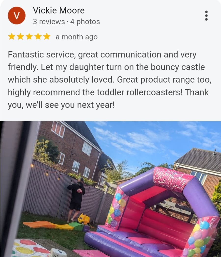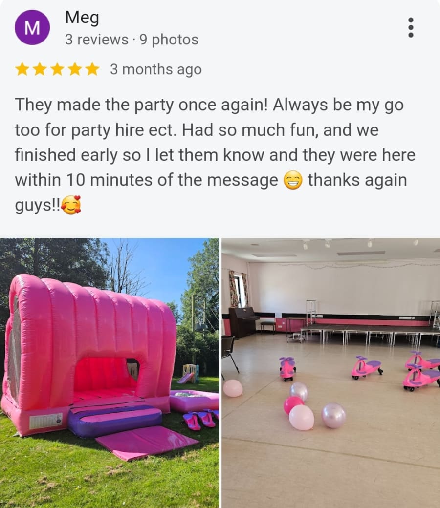 My mum has used this company for my niece’s birthday parties several times over the years, and they have always been fantastic. They’re incredibly accommodating, highly professional, and offer a great variety of lovely bouncy options to choose from. We would 100% recommend them, and we’ll definitely continue using them in the future.