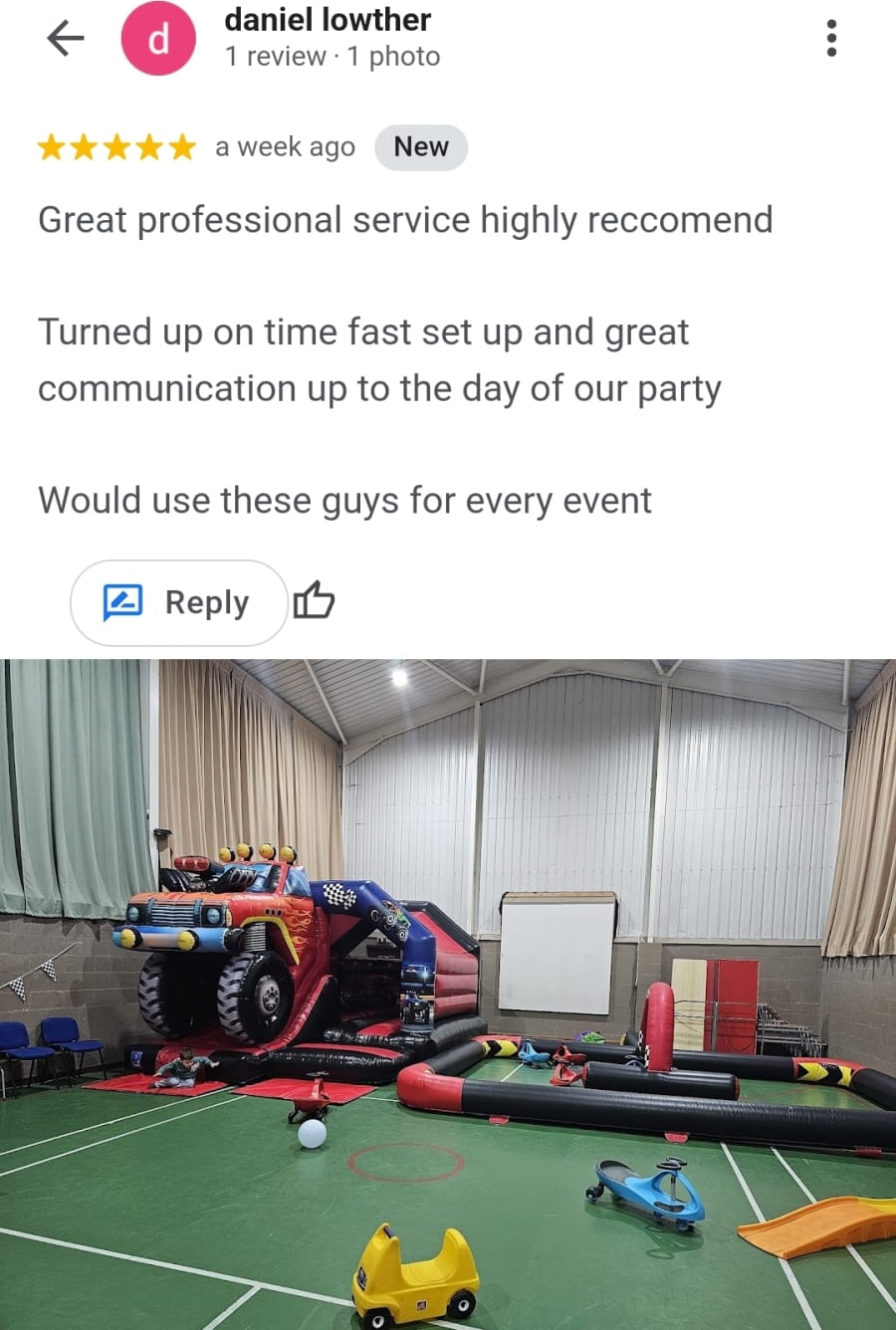 Fantastic service, the bouncy castle was awesome and everyone loved it! The soft play was a perfect add on for the smaller kids. Great value and the lads were super helpful! Will be using again!